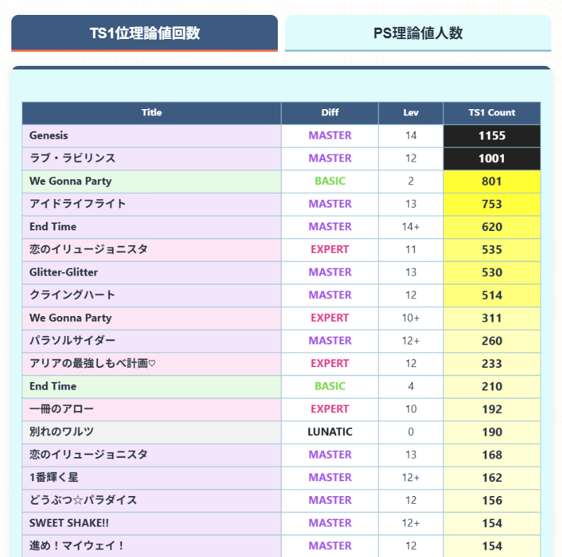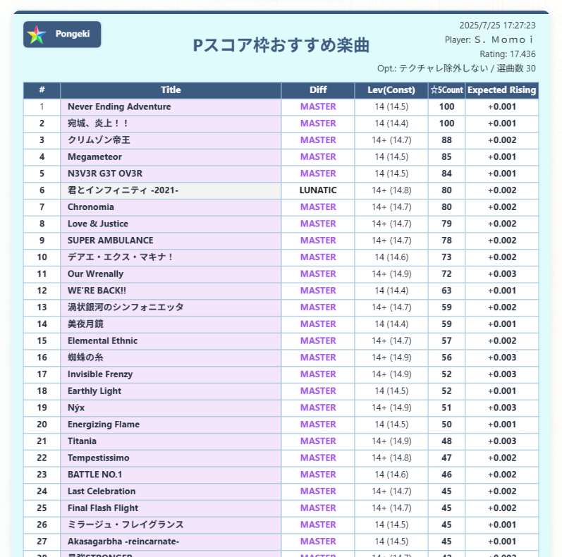 Pスコア枠におすすめの楽曲を自動で選出します。